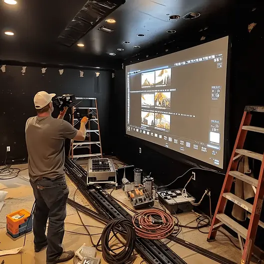Installation of projectors and outdoor entertainment systems for immersive experiences.